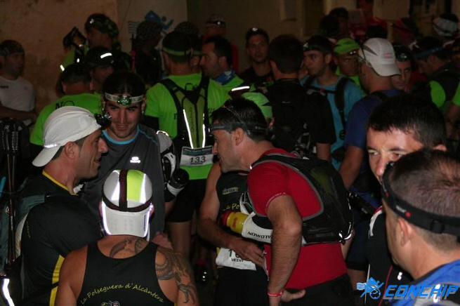 La plazoleta repleta, gente saludandose, todos con frontales en la cabeza y a las 6 en punto se da el pistoletazo de salida y nos disponemos a afrontar los 65 km de distancia que nos separaba la linea de salida hasta la meta.